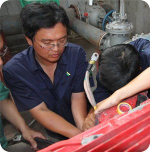 15:30,张益超与笔者交流时,他的手机响了,“消防水泵跳闸了,你来一下吧”,张益超说了句不好意思,拿着工具就走了。这时恰巧电仪组的工程师周冬青进来了,我说明了想去现场看一下工作的张益超时,他欣然同意,带我们前去的路上,说起张益超时,周工打开了话匣子,如数家珍:“小伙子来公司时间不长,但好学肯干,干活不惜力气,先后参与了甲醇项目35KV、10KV变电系统的安装调试,对甲醇项目的电力系统十分熟悉,是这个年龄段中不可多得的,也是进步较快的”,来到消防水泵房,张益超正忙着查找故障点,不便多聊,我便离开了。
