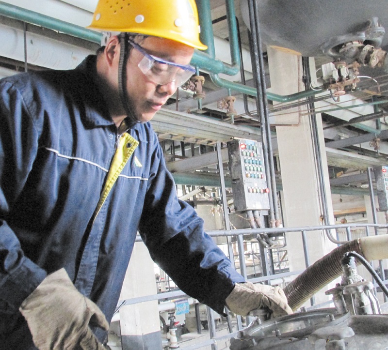 在采访张划之的短短半小时内,对讲机多次呼叫张划之。不管哪里有问题,呼叫张划之,他就会立即赶至现场,查找问题,处理问题,这在磺酸工段已成为共识。